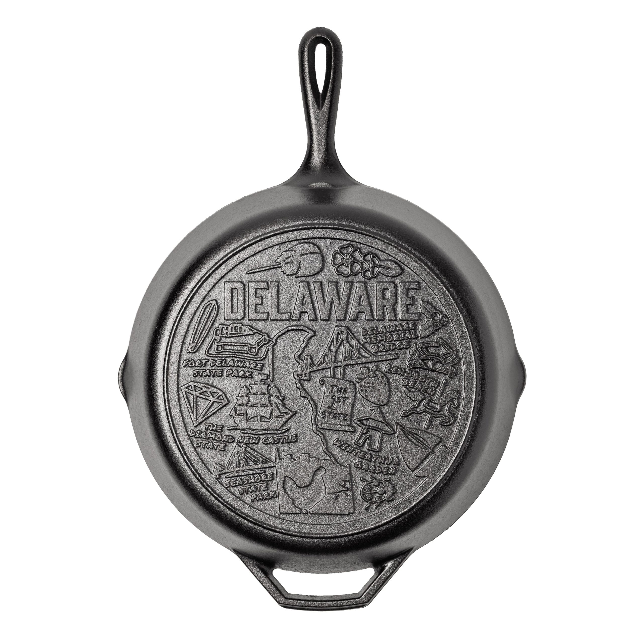 Celebrate the very first state to adopt the Constitution with a special edition Delaware skillet! This pan is part of our American Road Trip series, and takes you on a tour of your favorite states. Enjoy Delaware¡¯s beloved blue crab up and down the bay, have a chat with the carousel horses in Rehoboth Beach, or go back in time on the Kalmar Nyckel Tall Ship. Look closely to find the state tree, the Holly; stop and smell the Peach Blossoms, Delaware¡¯s state flower; and keep your eyes peeled for the state¡¯s beautiful Horseshoe Crabs.