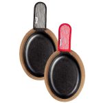 Nothing turns heads like a sizzling platter of fajitas! Cast iron provides great heat retention, incredible durability, and a naturally seasoned cooking surface that¡¯s ready to go, straight from the foundry. This set features wooden underliners and fabric handle holders, so it¡¯s easy to serve from kitchen to table. Turn up the sizzle!